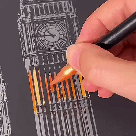 Kazıdıkça ortaya çıkan canlı renkler, sıradan bir yüzeyi adım adım sanata dönüştürür.