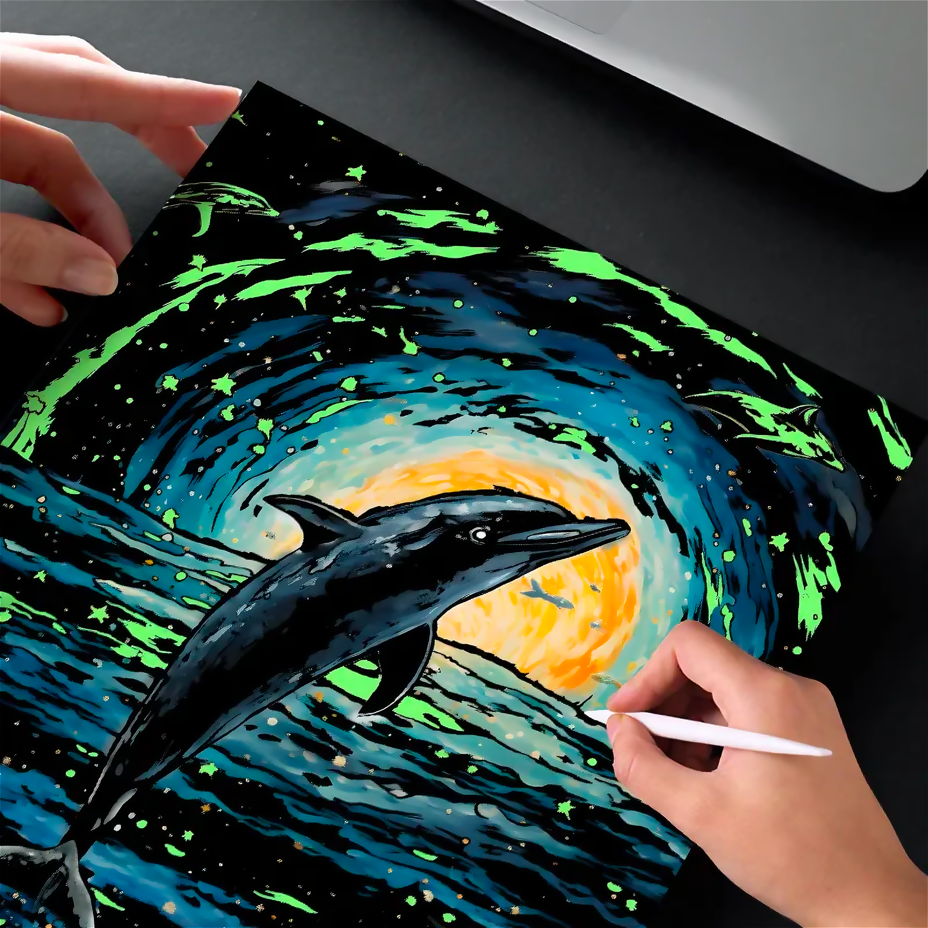 ✏️ 6 adet kazıma kalemi + fırça sete dahildir