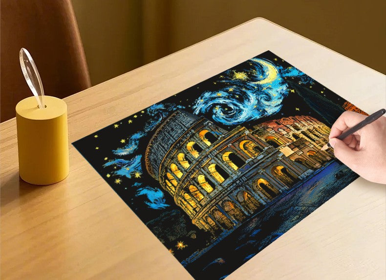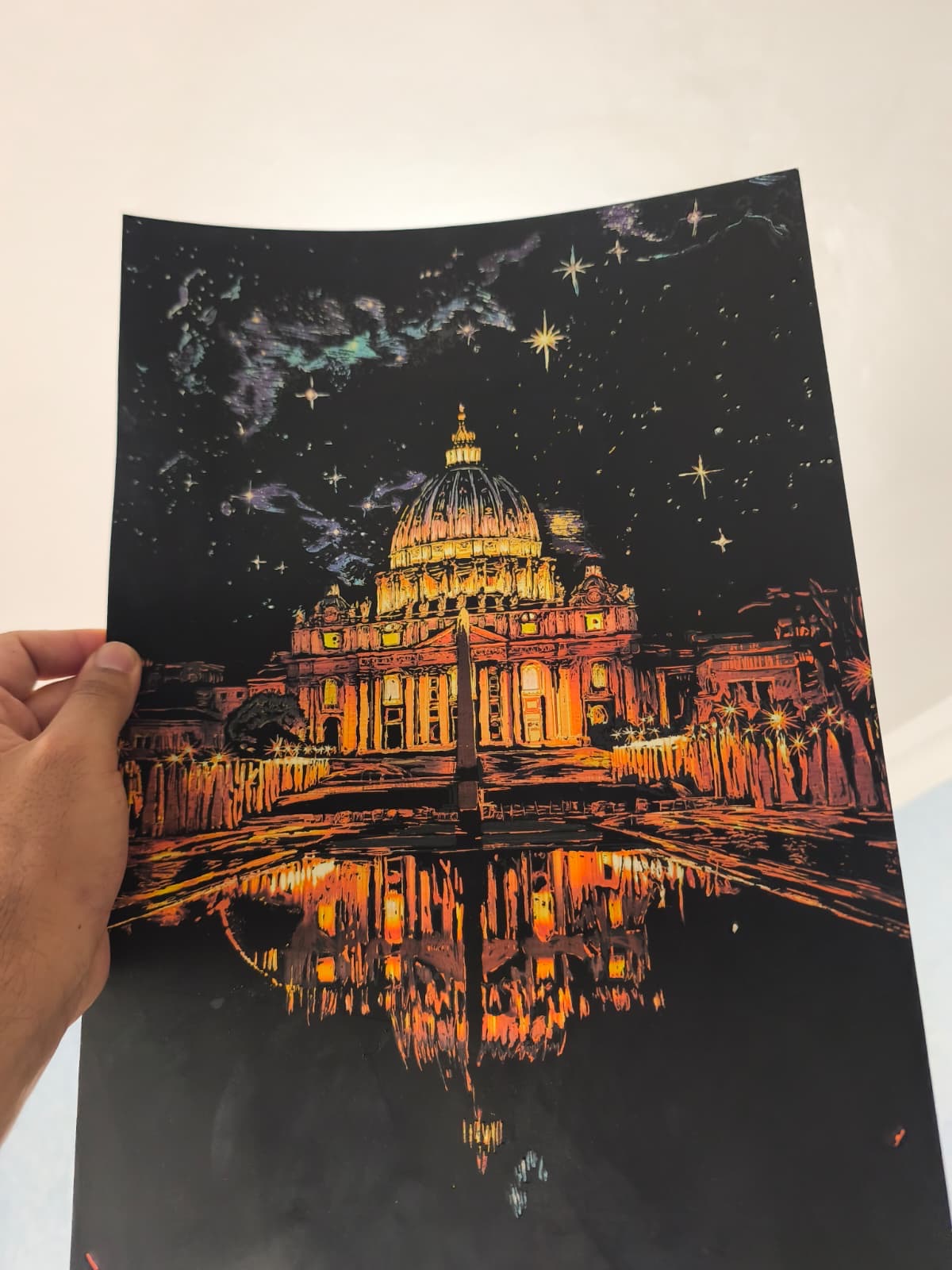 - 4 adet farklı manzaralı kazıma kâğıdı (40,5 × 28,5 cm)