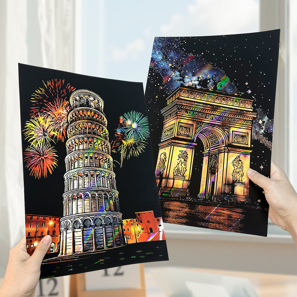 🌆 4 farklı manzaralı kazıma kâğıdı tek sette